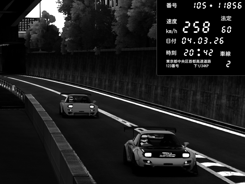 | 2026/03/04 20:40 | C1外回り 芝公園 | 226 / 60 km/h | Fuxp | Mazda RX-7 FD3S RE Amemiya | CAPTURE |