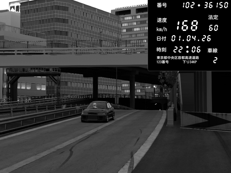 | 2026/04/01 22:06 | C1外回り 新富町 | 168 / 60 km/h | ??? | Mitsubishi Lancer Evolution V Wangan Spec | CAPTURE |
