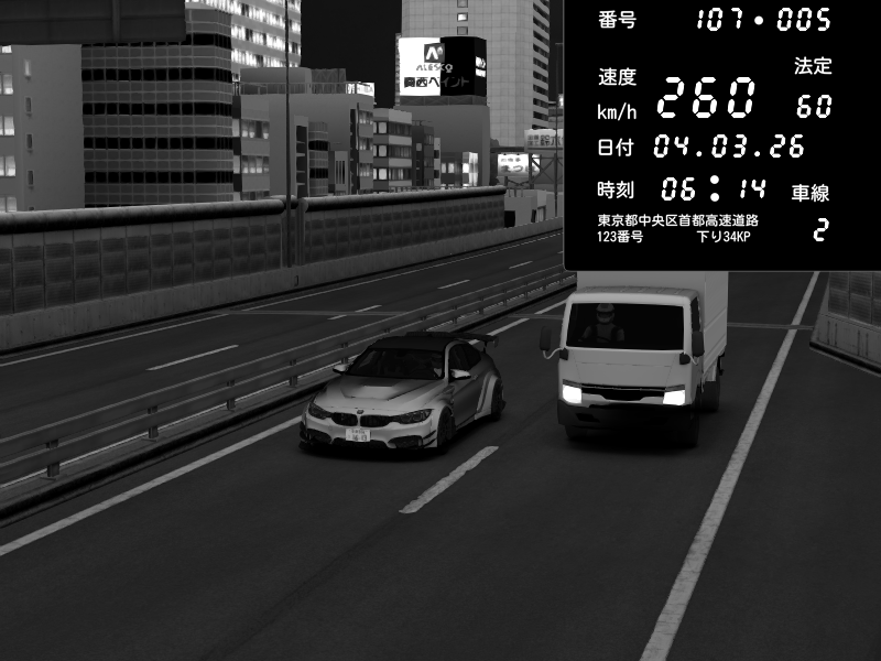 | 2026/03/04 20:38 | C1外回り 新富町 | 184 / 60 km/h | Raven | Pit Road M - Mitsubishi GTO Twin Turbo | CAPTURE |