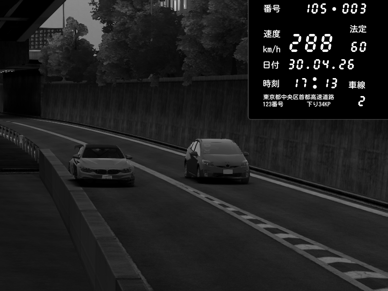 | 2026/04/29 21:28 | C1外回り 京橋 | 292 / 60 km/h | ninias | BMW M4 crash.Sp Varis Widebody | CAPTURE |