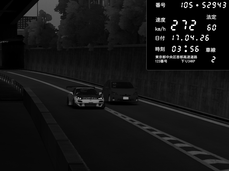 | 2026/04/17 03:56 | C1外回り 京橋 | 272 / 60 km/h | Player | Mazda RX-7 FD3S RE Amemiya | CAPTURE |