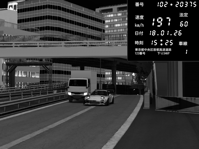 | 2026/01/18 15:24 | C1外回り 新富町 | 200 / 60 km/h | ゴストレイ | Mazda RX-7 FD3S FEED Afflux GT3 | CAPTURE |