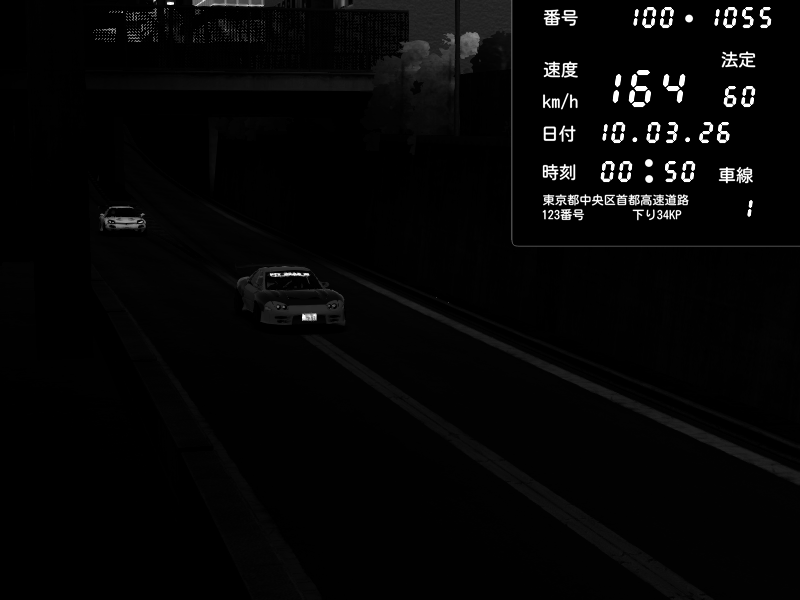 | 2026/03/10 01:00 | C1内回り 京橋 | 157 / 60 km/h | pixiv | Mazda RX-7 FD3S RE Amemiya | CAPTURE |
