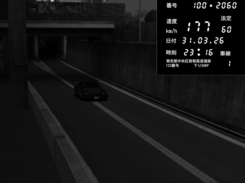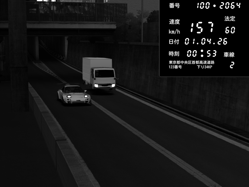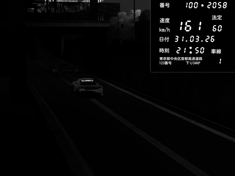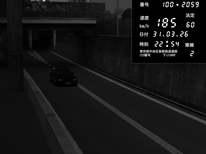 | 2026/03/31 22:54 | C1内回り 京橋 | 185 / 60 km/h | Toraya | Nissan Skyline GTR R33 (S3 - Wangan) | CAPTURE |