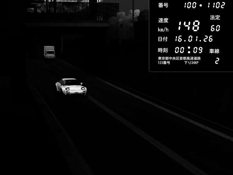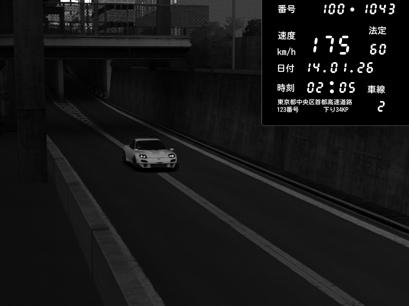 | 2026/01/14 02:11 | C1内回り 京橋 | 124 / 60 km/h | Santos | Mazda RX-7 FD3S RE Amemiya | CAPTURE |