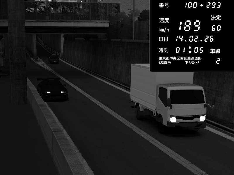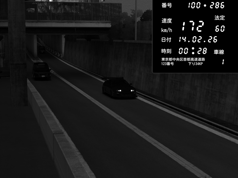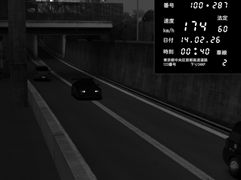| 2026/02/13 23:18 | C1内回り 京橋 | 184 / 60 km/h | ユリカ@内専 | Pit Road M - Mitsubishi GTO Twin Turbo | CAPTURE |