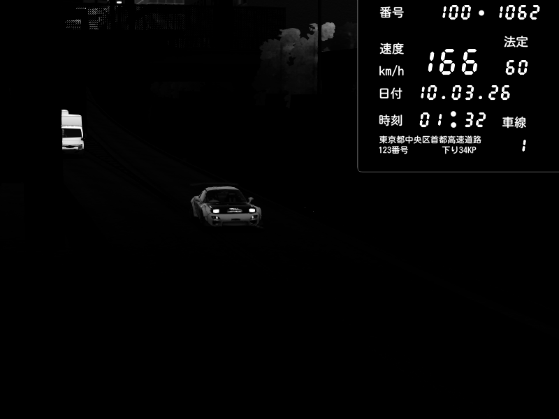 | 2026/03/09 18:16 | C1内回り 京橋 | 184 / 60 km/h | Q1W@NG | Pit Road M - Mitsubishi GTO Twin Turbo | CAPTURE |