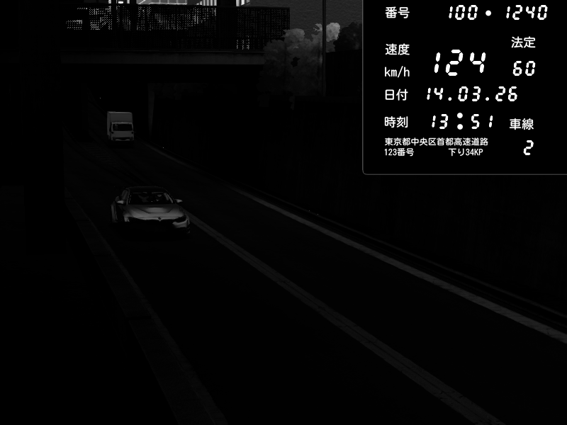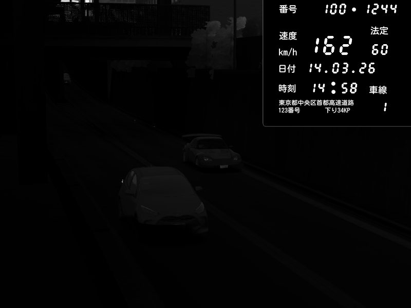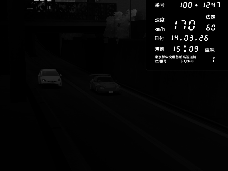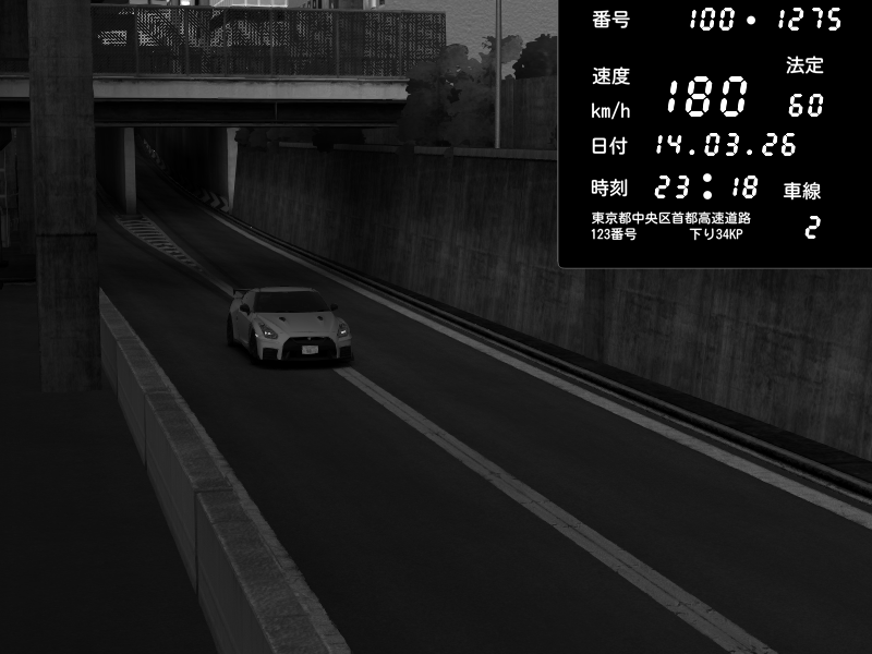 | 2026/03/14 23:14 | C1内回り 京橋 | 163 / 60 km/h | Toraya | Nissan GT-R NISMO 2017 | CAPTURE |