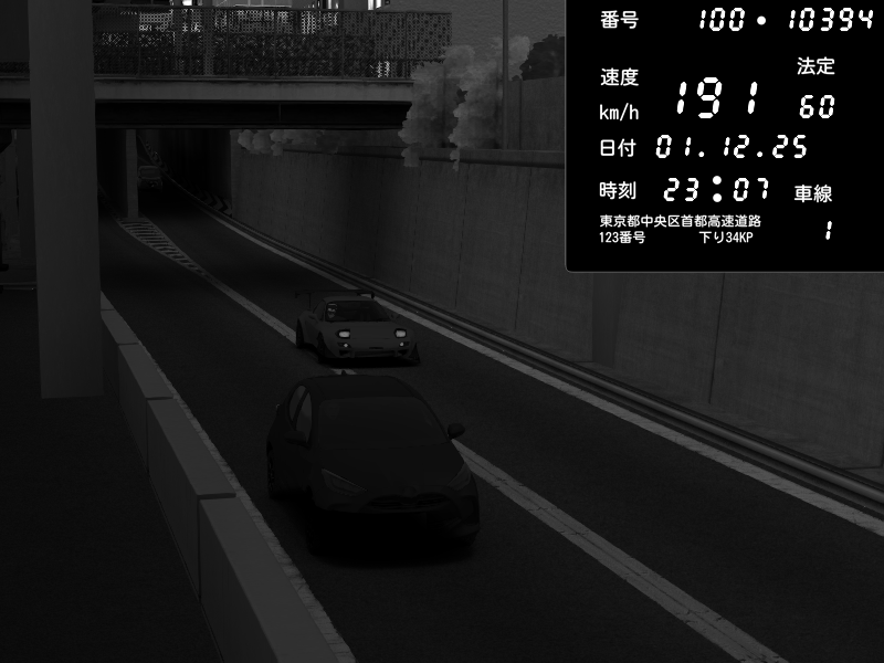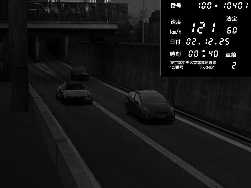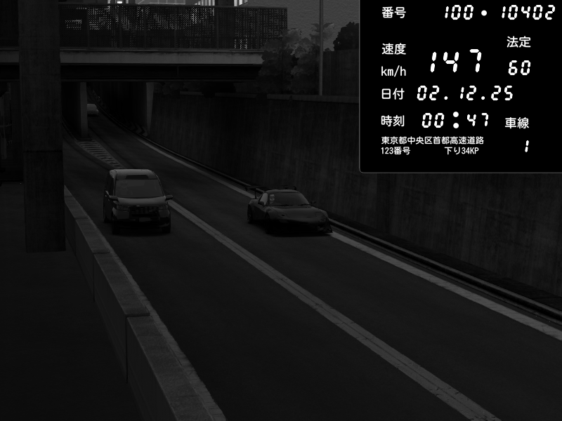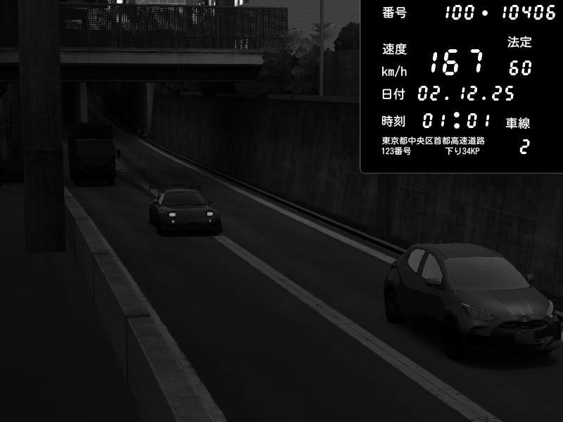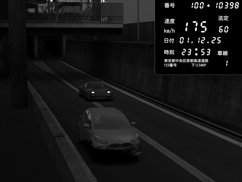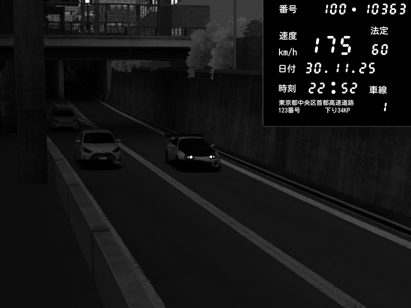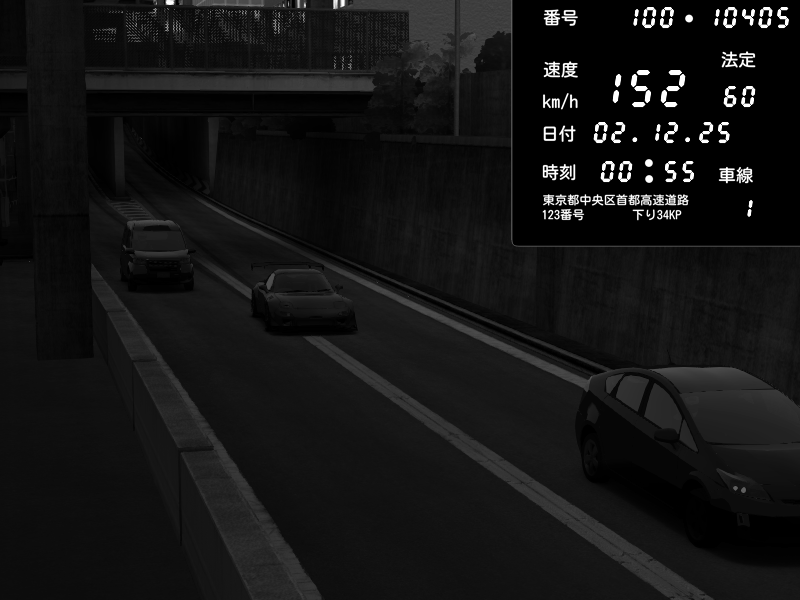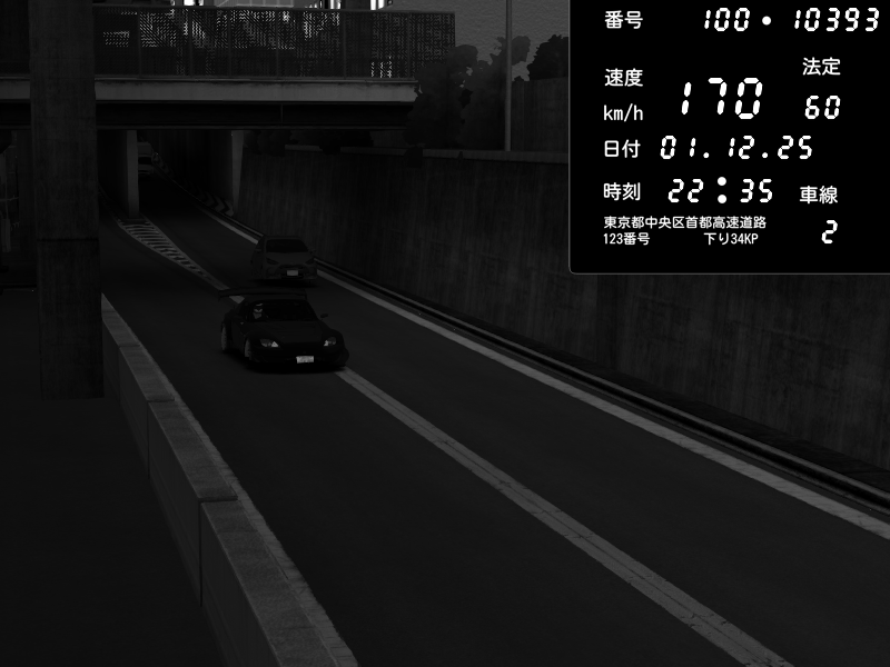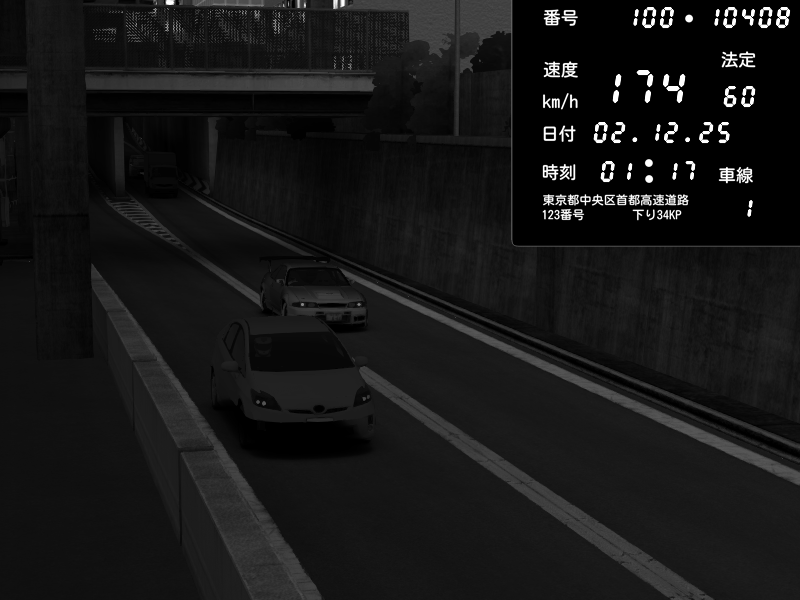 | 2025/12/01 01:10 | C1内回り 京橋 | 170 / 60 km/h | PlasticSaxophone | Pit Road M - Mitsubishi GTO Twin Turbo | CAPTURE |