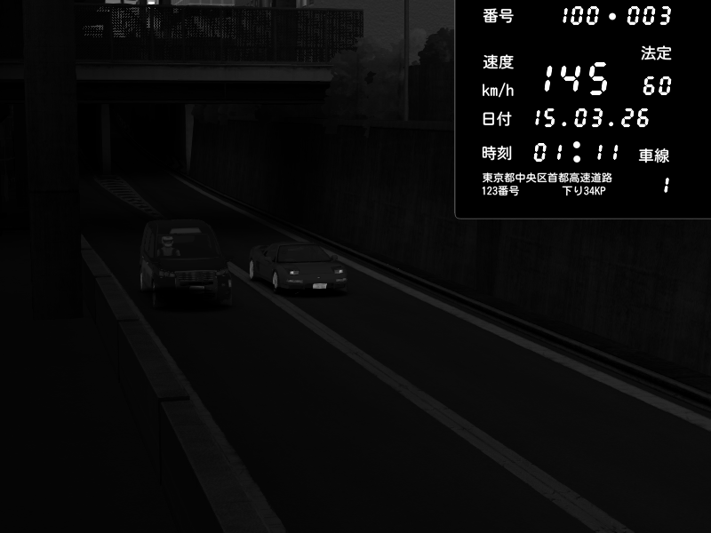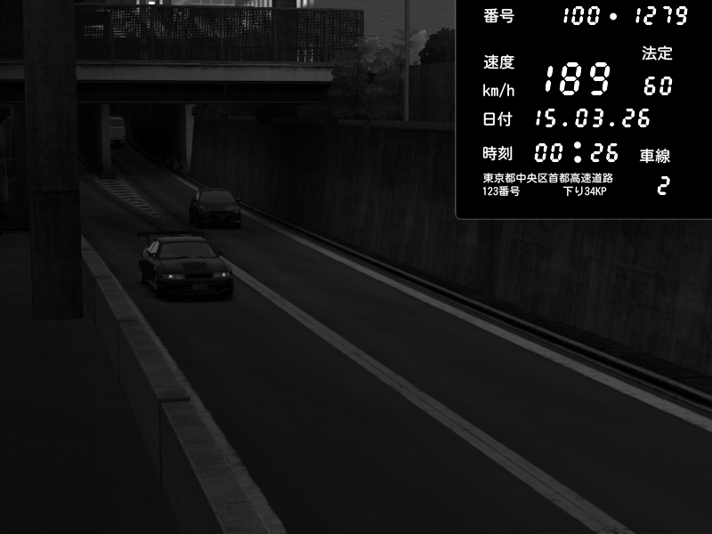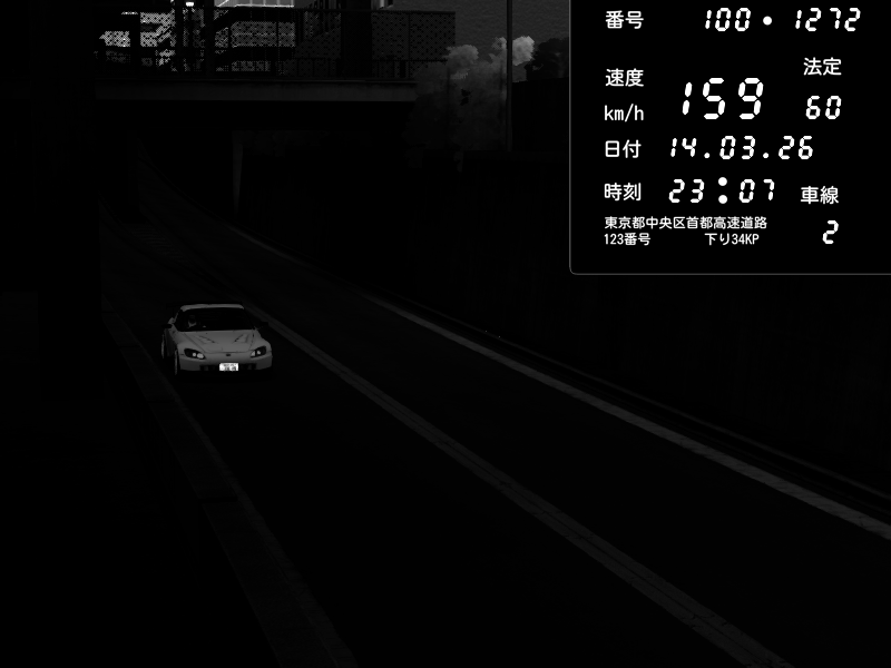 | 2026/03/14 23:13 | C1内回り 京橋 | 123 / 60 km/h | ninias | Honda S2000 (AP2 - Legendary) | CAPTURE |