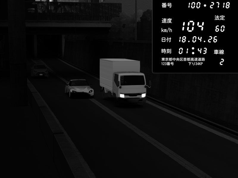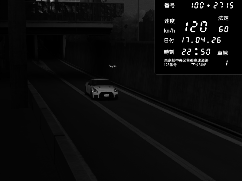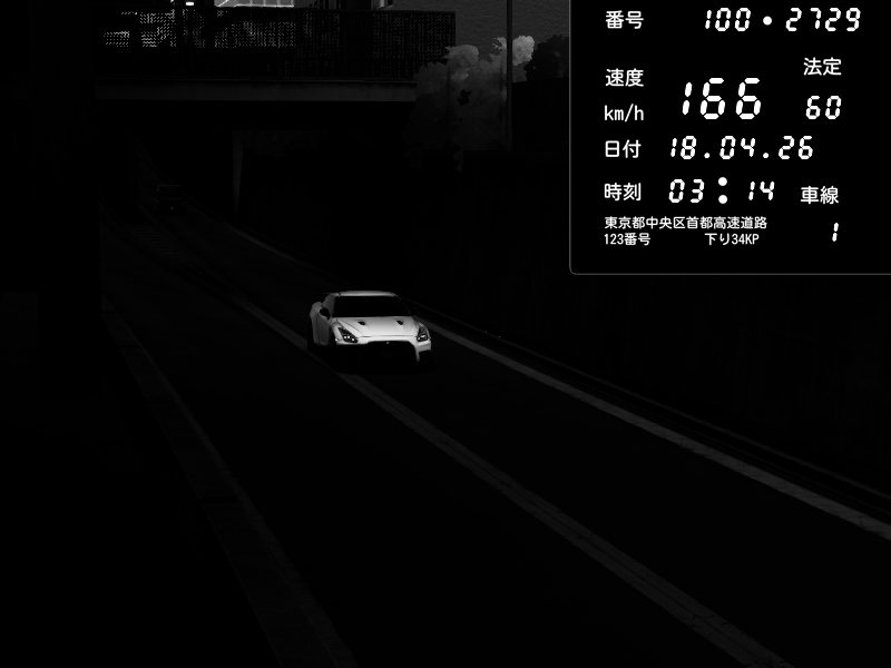 | 2026/04/16 23:40 | C1内回り 京橋 | 128 / 60 km/h | 星野好躁LegendRed | Nissan GT-R NISMO 2017 | CAPTURE |