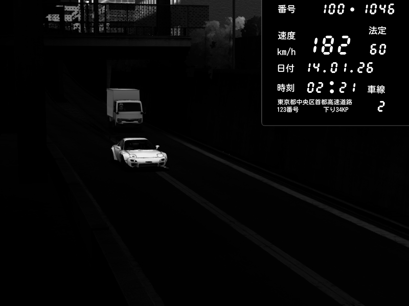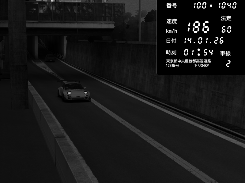 | 2026/01/14 02:05 | C1内回り 京橋 | 178 / 60 km/h | PEUGEOT406 | Pit Road M - Mitsubishi GTO Twin Turbo | CAPTURE |
