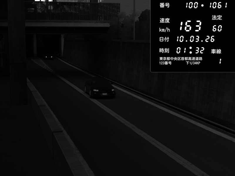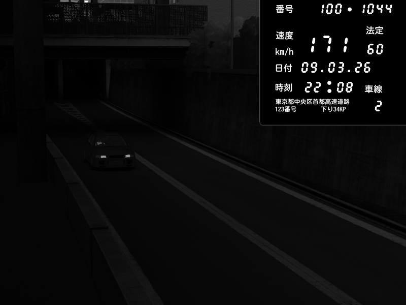 | 2026/03/09 23:44 | C1内回り 京橋 | 150 / 60 km/h | Player | Pit Road M - Mitsubishi GTO Twin Turbo | CAPTURE |