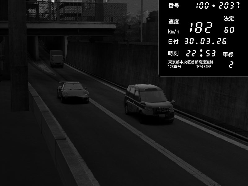 | 2026/03/30 22:53 | C1内回り 京橋 | 182 / 60 km/h | Nook | Porsche 911 GT3 RS | CAPTURE |