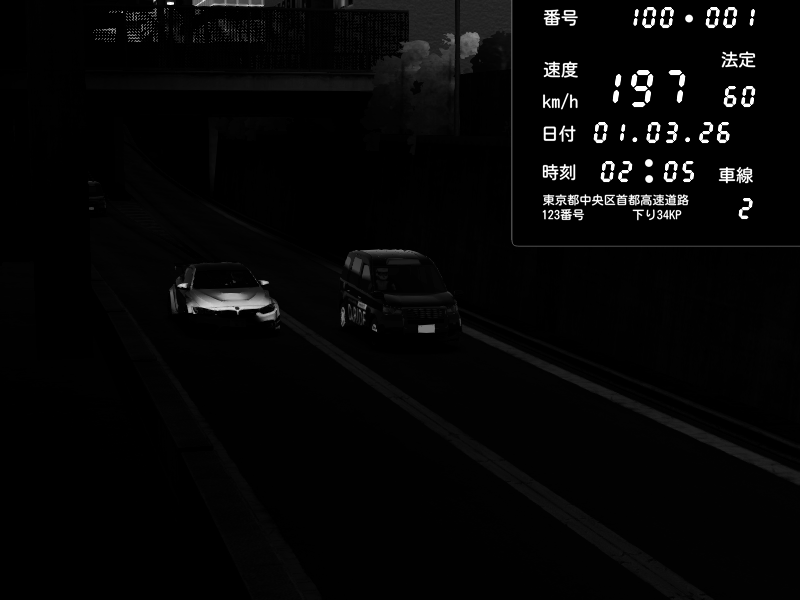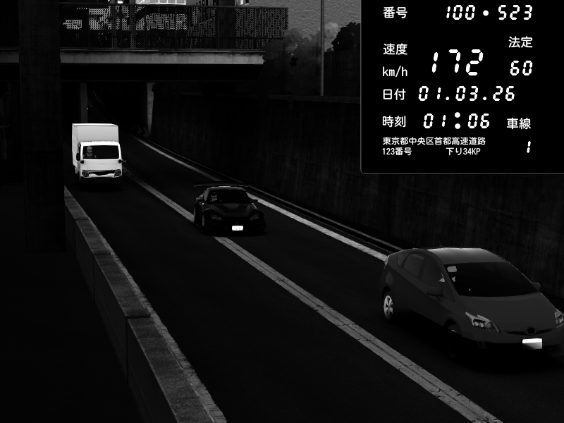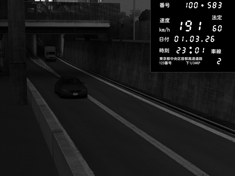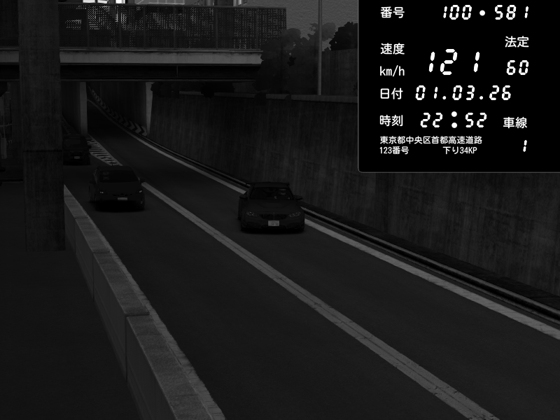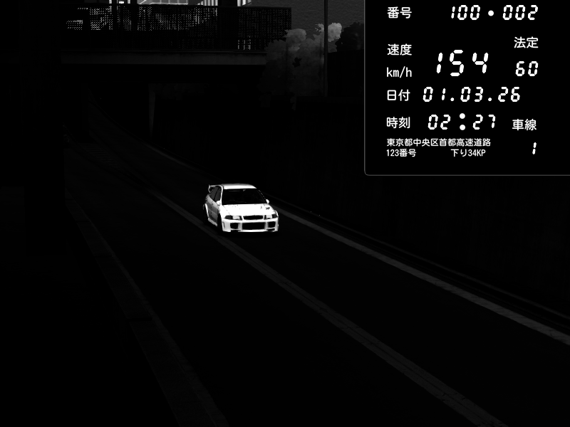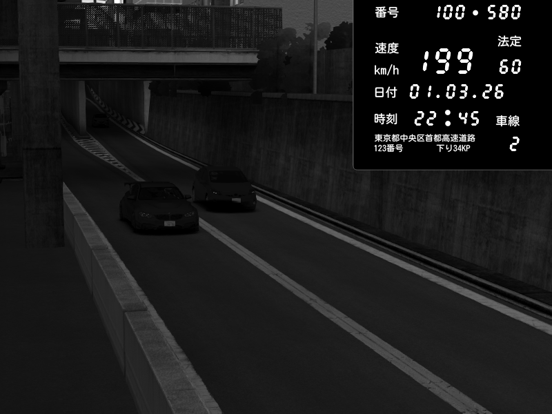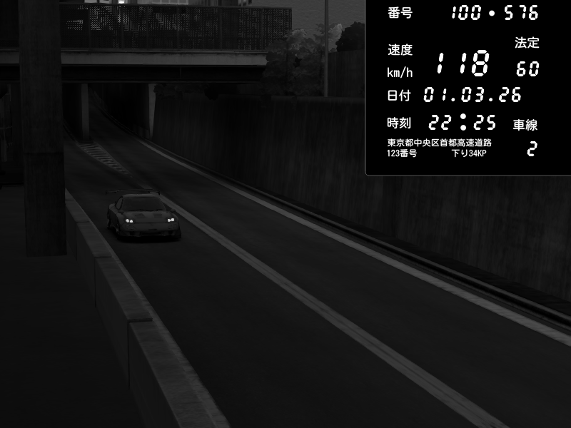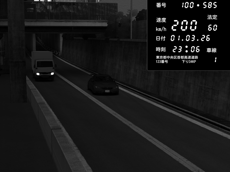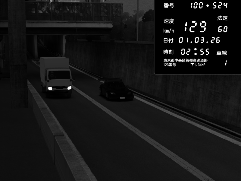 | 2026/03/01 20:49 | C1内回り 京橋 | 125 / 60 km/h | Player | Pit Road M - Mitsubishi GTO Twin Turbo | CAPTURE |