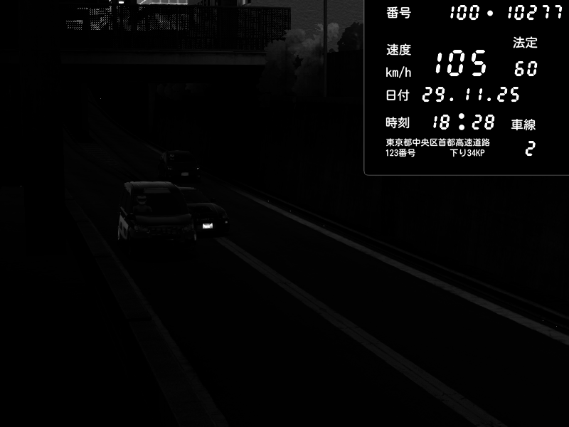 | 2025/11/28 20:50 | C1内回り 京橋 | 182 / 60 km/h | Blanky | Mazda RX-7 FD3S RE Amemiya | CAPTURE |