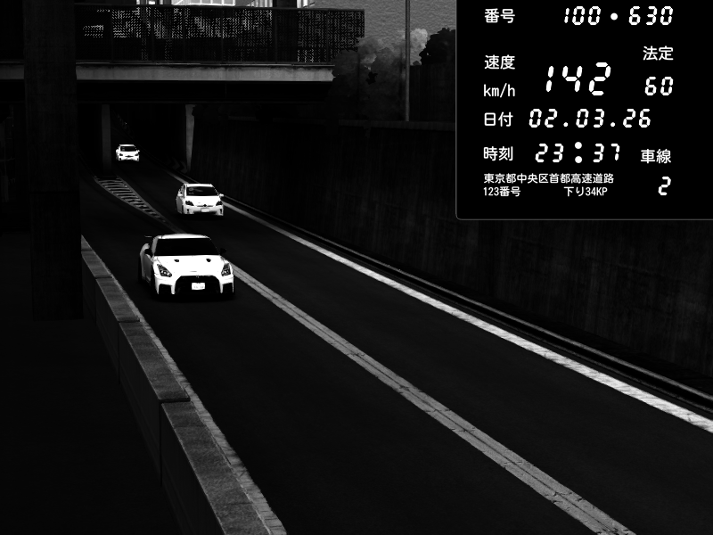 | 2026/03/02 23:37 | C1内回り 京橋 | 142 / 60 km/h | LittleClimb | Nissan GT-R NISMO 2017 | CAPTURE |