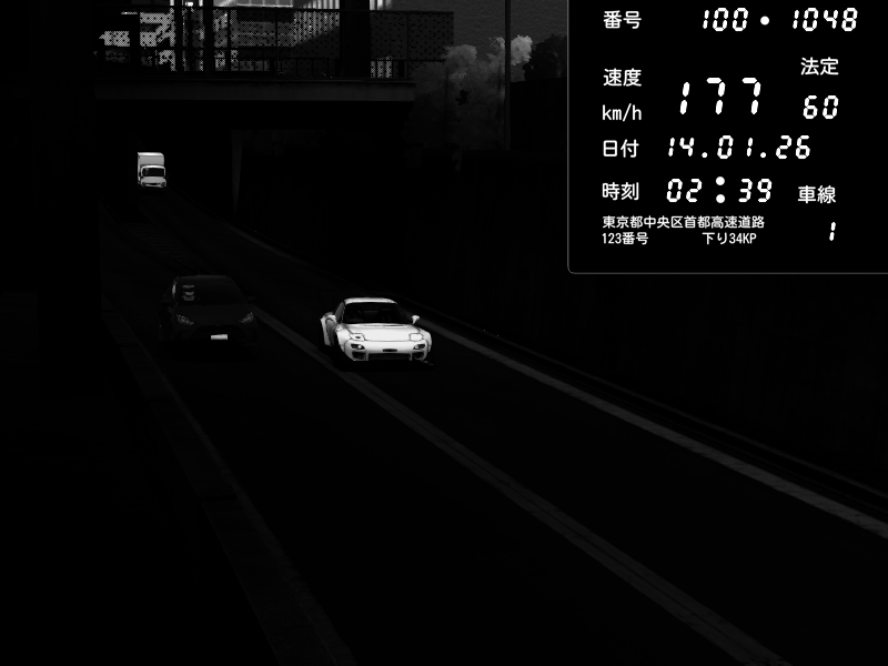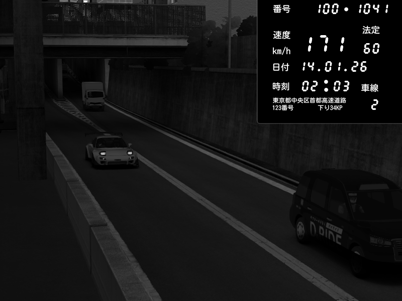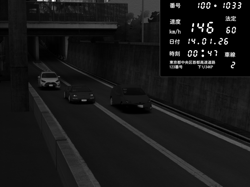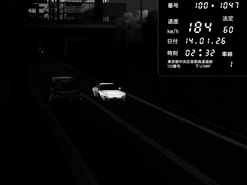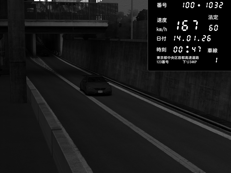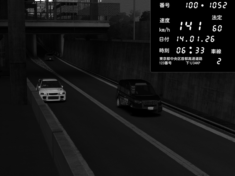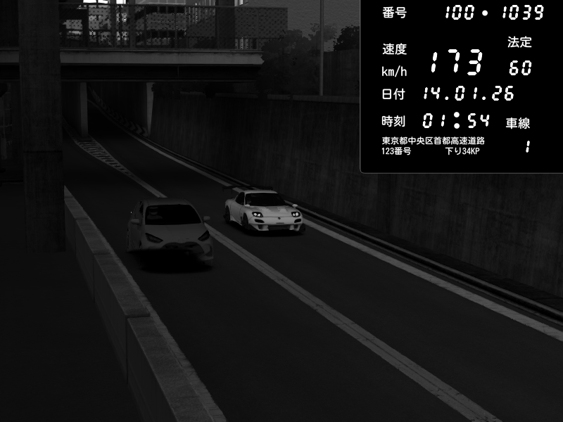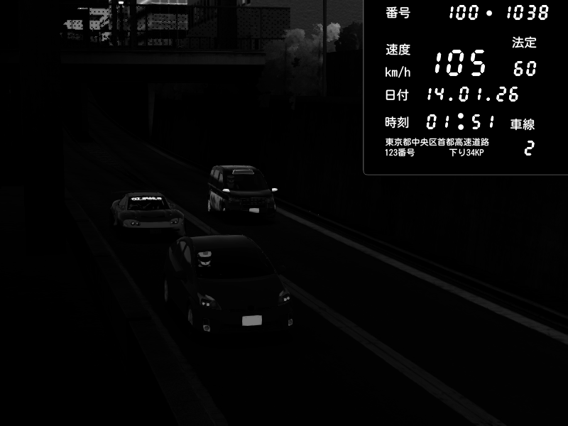 | 2026/01/14 01:51 | C1内回り 京橋 | 105 / 60 km/h | PEUGEOT406 | Pit Road M - Mitsubishi GTO Twin Turbo | CAPTURE |