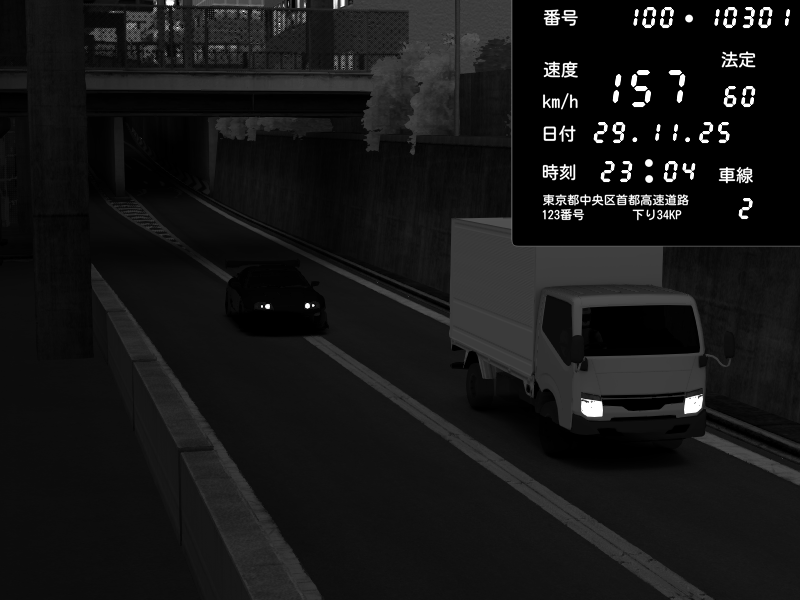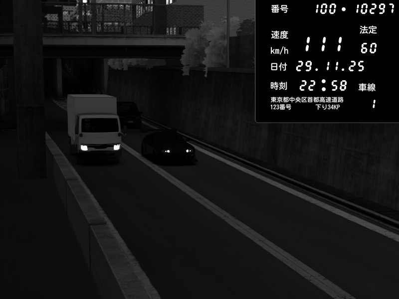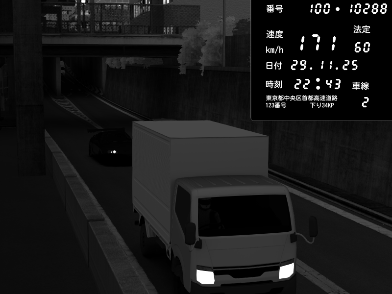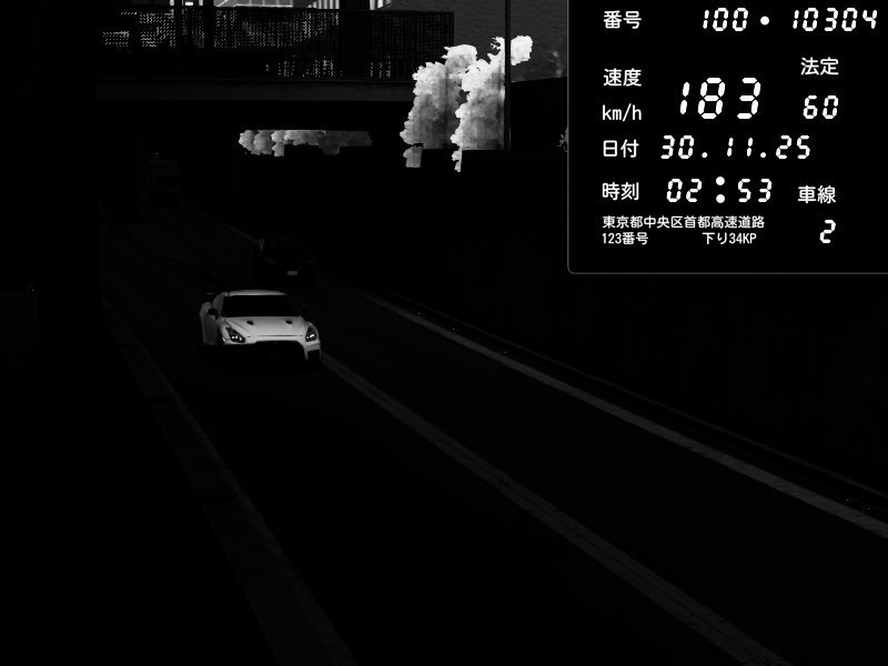| 2025/11/30 02:53 | C1内回り 京橋 | 183 / 60 km/h | SoftHard | Nissan GT-R NISMO 2017 | CAPTURE |
