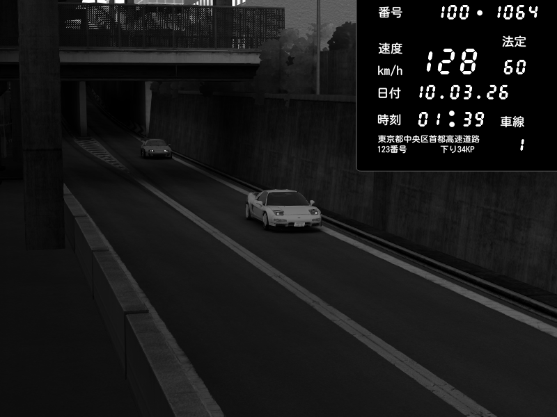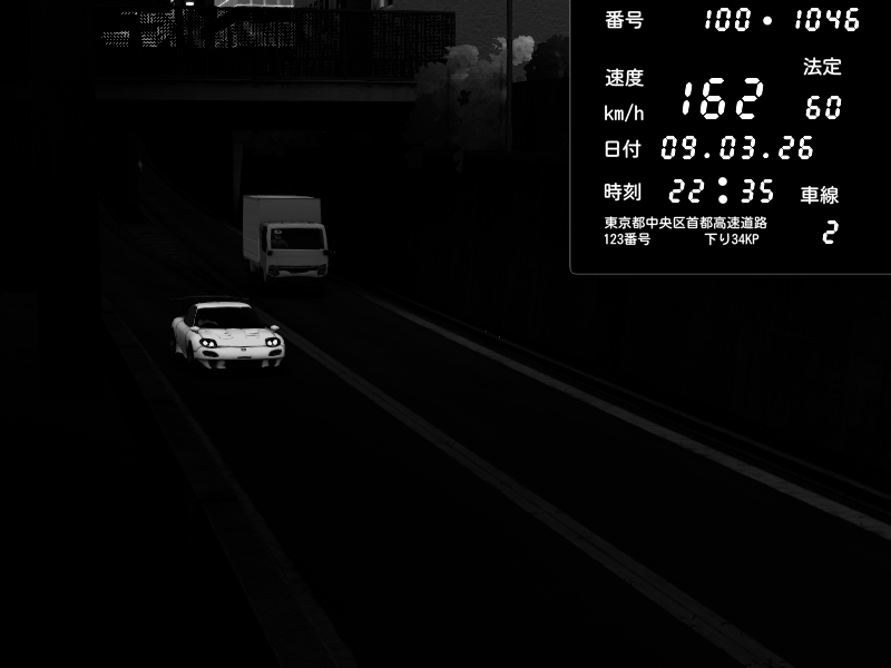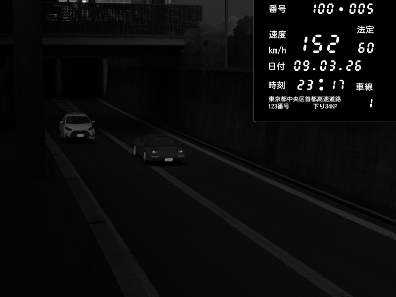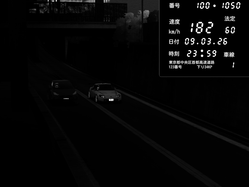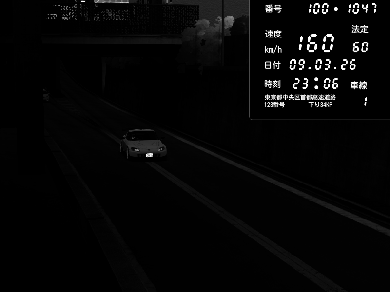 | 2026/03/09 23:59 | C1内回り 京橋 | 182 / 60 km/h | 木曜が一番疲れている | Honda S2000 (AP2 - Legendary) | CAPTURE |