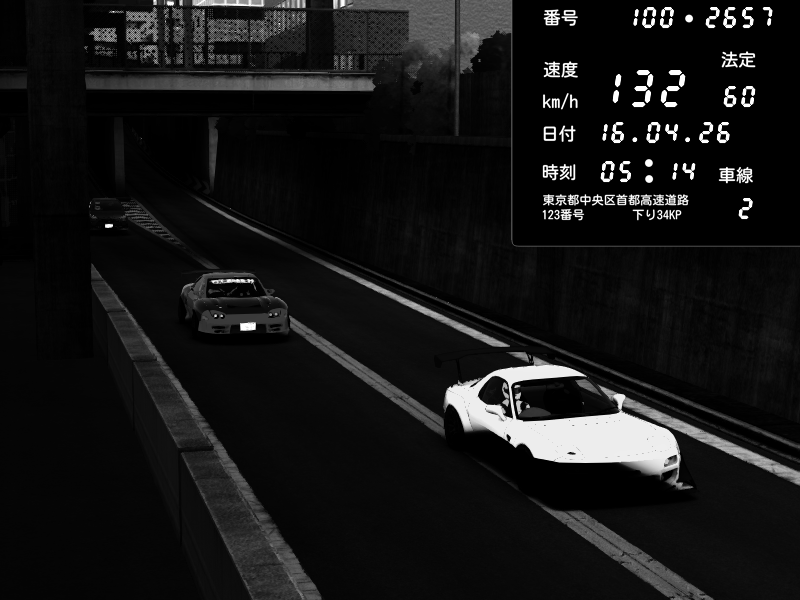 | 2026/04/15 23:21 | C1内回り 京橋 | 144 / 60 km/h | Lenny | Mazda RX-7 FD3S RE Amemiya | CAPTURE |