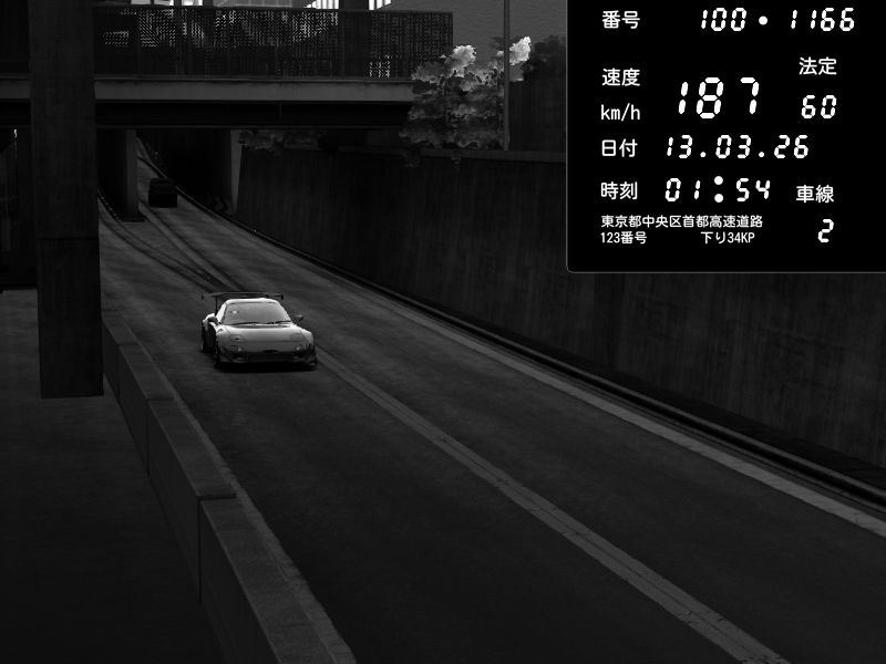 | 2026/03/11 22:20 | C1内回り 京橋 | 188 / 60 km/h | Toraya | Mazda RX-7 FD3S RE Amemiya | CAPTURE |