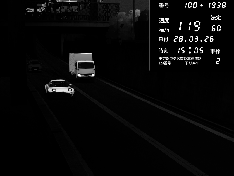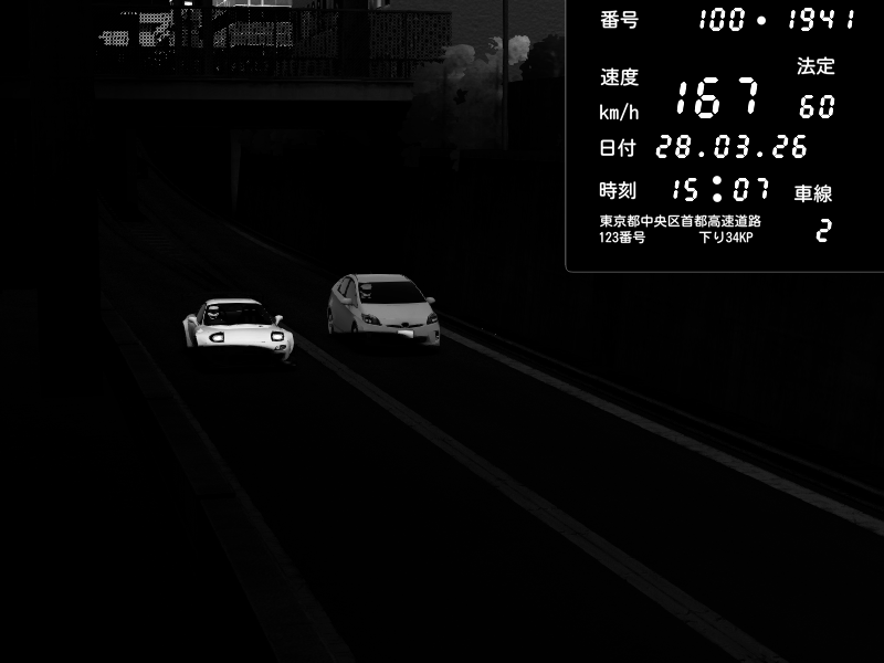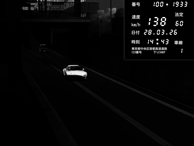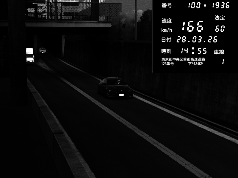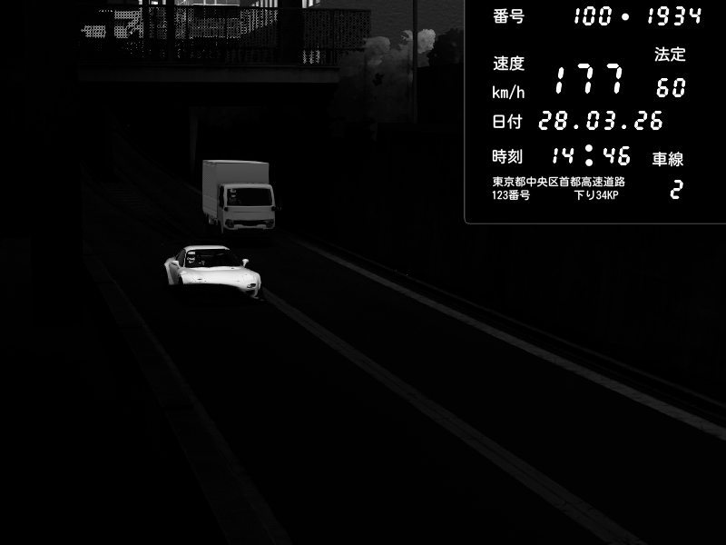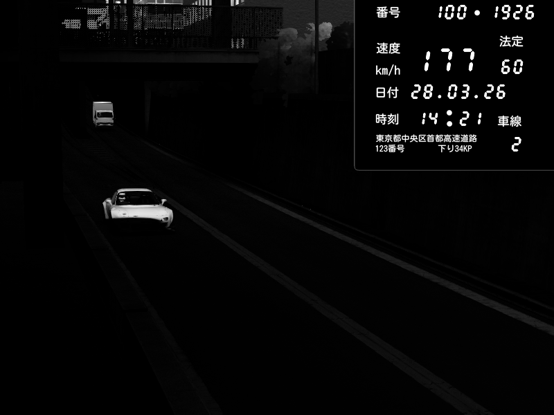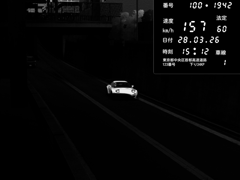 | 2026/03/27 20:39 | C1内回り 京橋 | 116 / 60 km/h | データベース3000 | Pit Road M - Mitsubishi GTO Twin Turbo | CAPTURE |