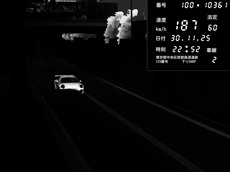 | 2025/11/30 22:52 | C1内回り 京橋 | 187 / 60 km/h | 🔰Shiero | Porsche 911 GT3 RS | CAPTURE |