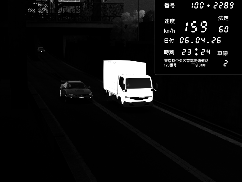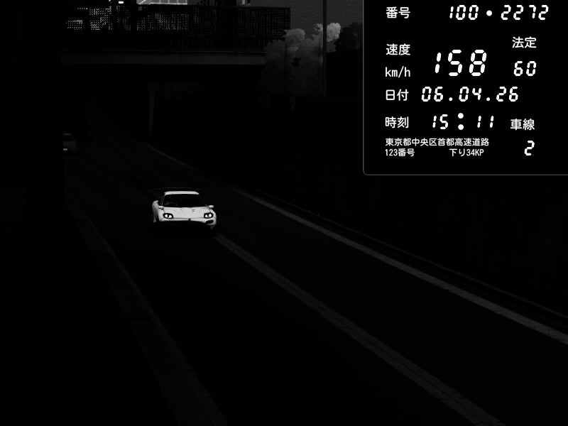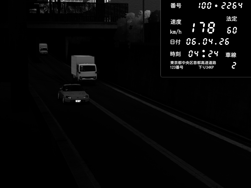| 2026/04/06 00:10 | C1内回り 京橋 | 169 / 60 km/h | MK DAS 4FAIXA | Pit Road M - Mitsubishi GTO Twin Turbo | CAPTURE |