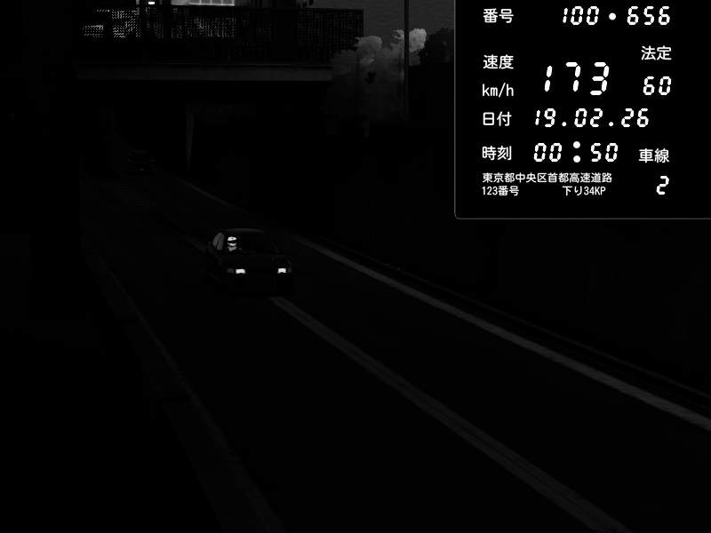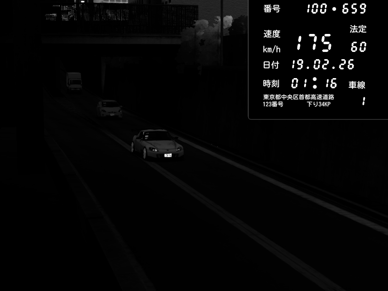 | 2026/02/19 01:16 | C1内回り 京橋 | 175 / 60 km/h | 木曜が一番疲れている | Honda S2000 (AP2 - Legendary) | CAPTURE |