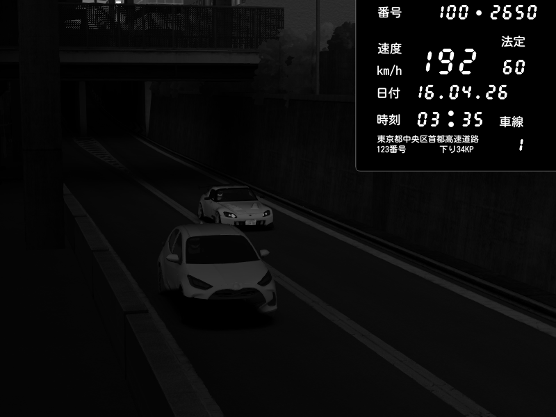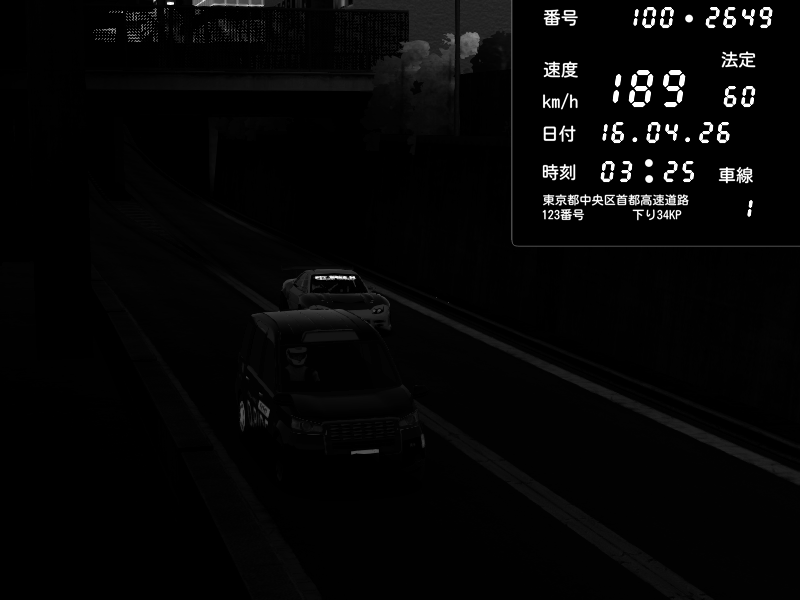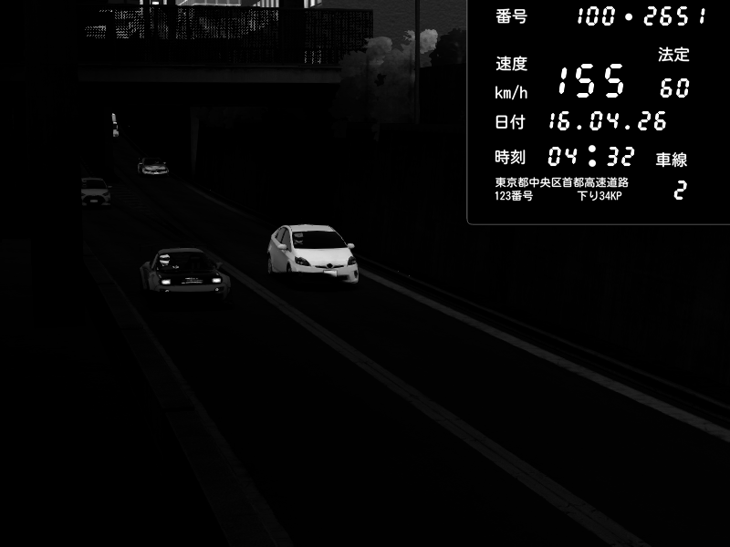 | 2026/04/16 03:13 | C1内回り 京橋 | 183 / 60 km/h | Unknown | Pit Road M - Mitsubishi GTO Twin Turbo | CAPTURE |