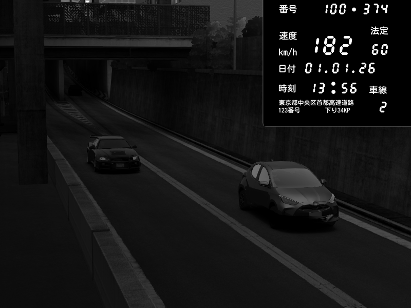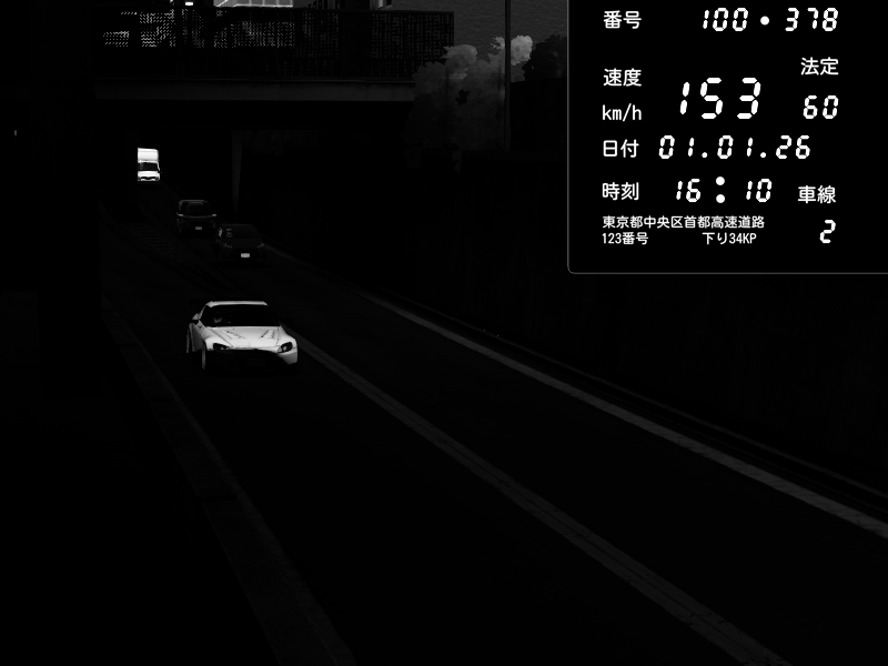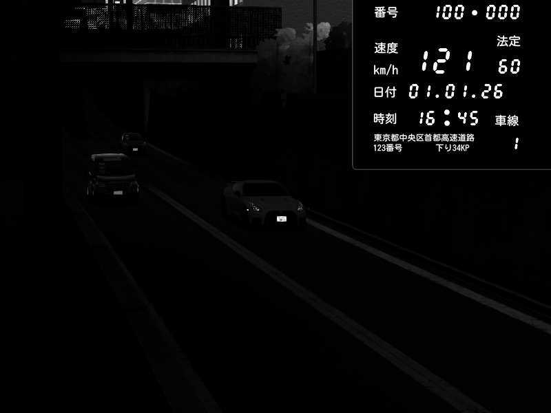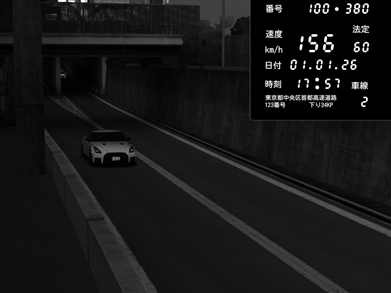 | 2026/01/01 04:20 | C1内回り 京橋 | 113 / 60 km/h | CAFFEINE | Nissan GT-R NISMO 2017 | CAPTURE |