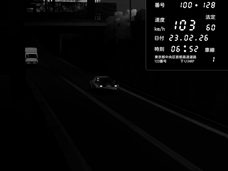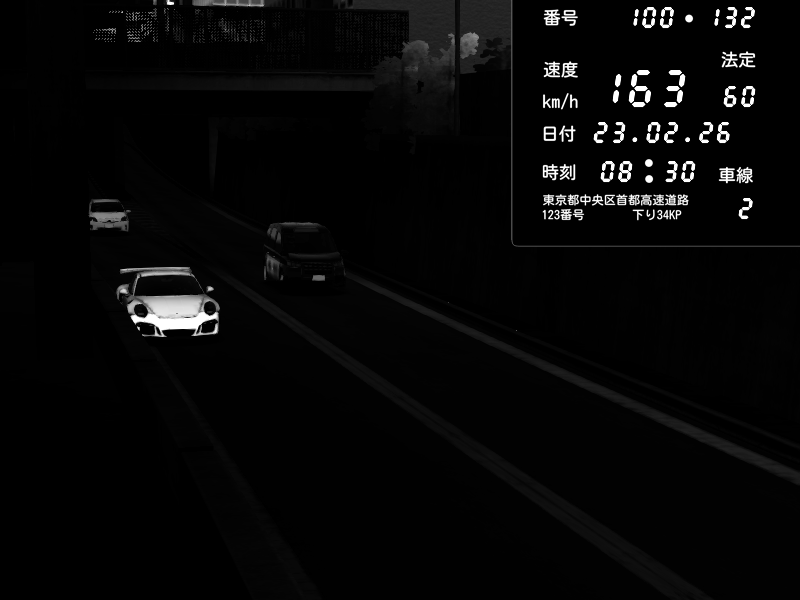 | 2026/02/24 07:01 | C1内回り 京橋 | 143 / 60 km/h | CG | Nissan GT-R NISMO 2017 | CAPTURE |