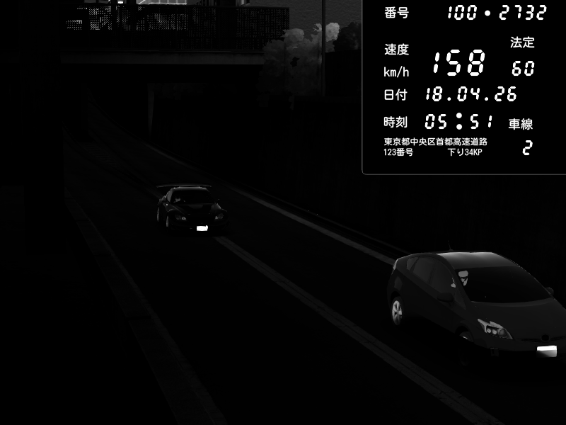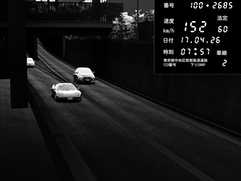 | 2026/04/17 23:48 | C1内回り 京橋 | 157 / 60 km/h | VIRTR0X | Honda NSX [NA1] PVLSX | CAPTURE |