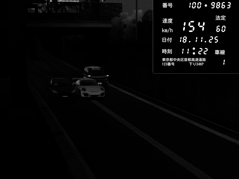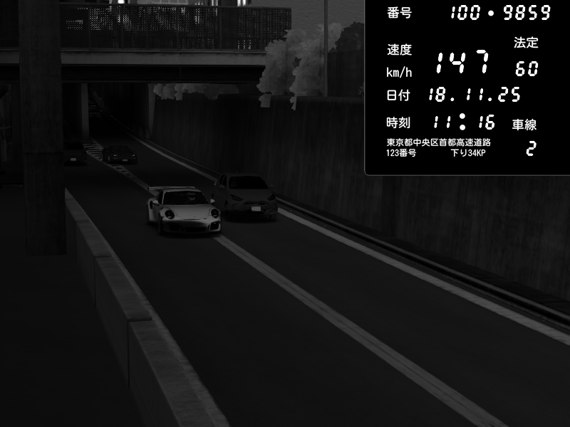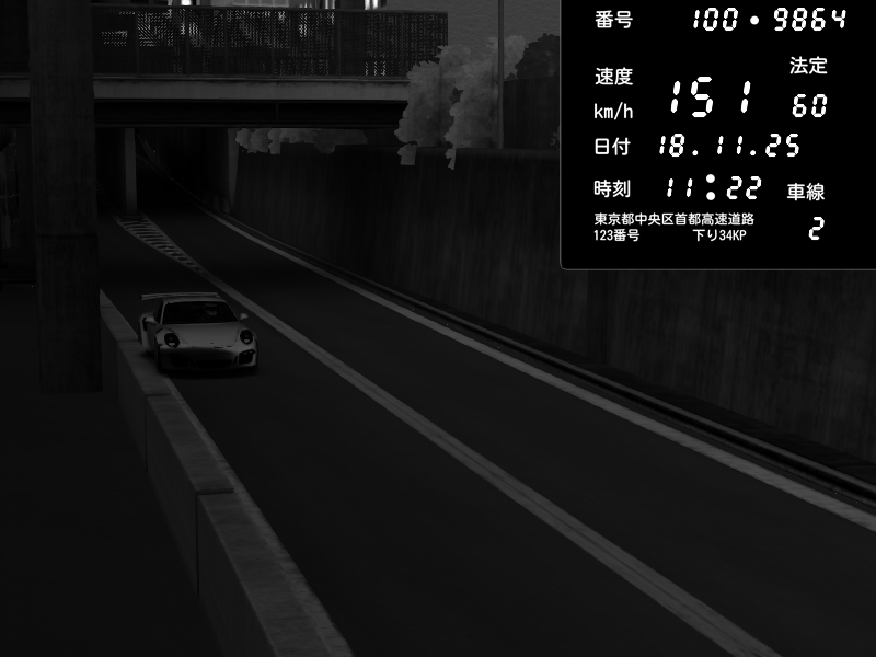 | 2025/11/18 11:22 | C1内回り 京橋 | 154 / 60 km/h | GTortuga | Porsche 911 GT3 RS | CAPTURE |