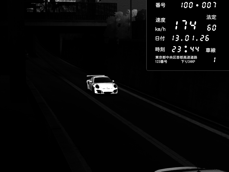 | 2026/01/13 23:44 | C1内回り 京橋 | 174 / 60 km/h | Sugamo | Porsche 911 GT3 RS | CAPTURE |
