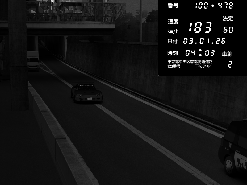 | 2026/01/03 04:03 | C1内回り 京橋 | 183 / 60 km/h | Raven | Pit Road M - Mitsubishi GTO Twin Turbo | CAPTURE |