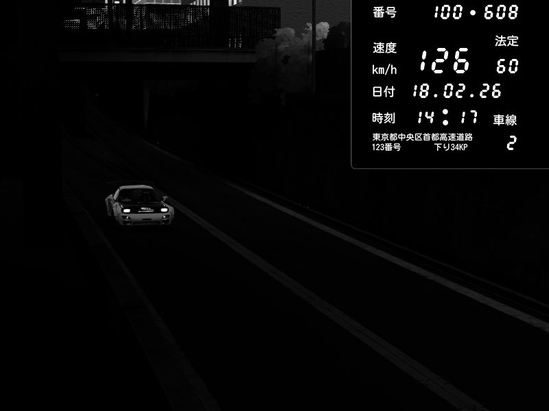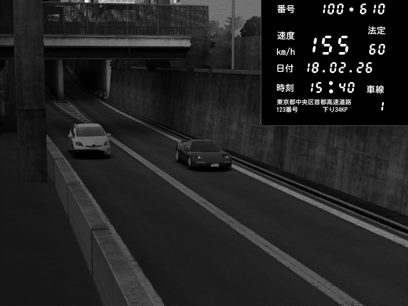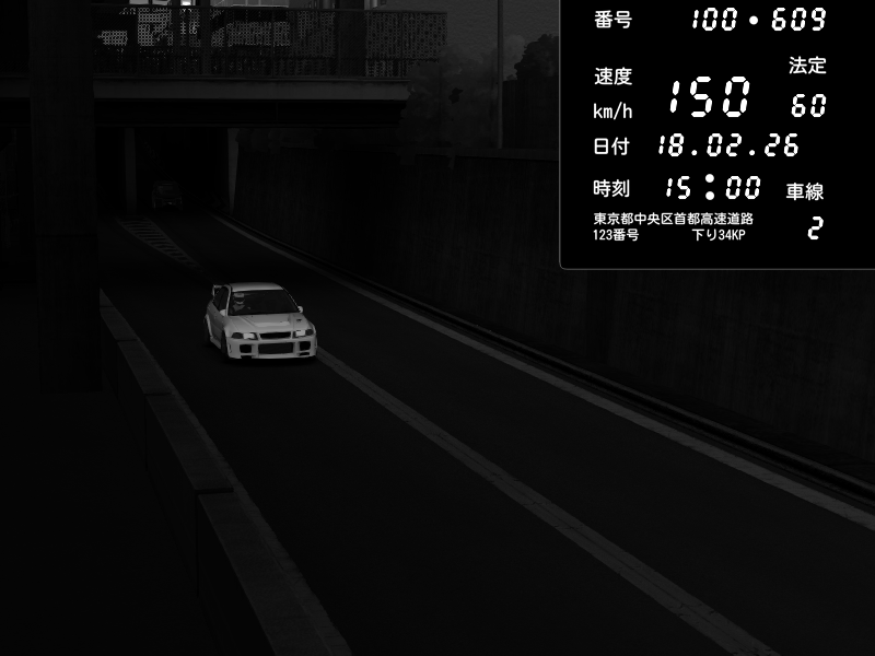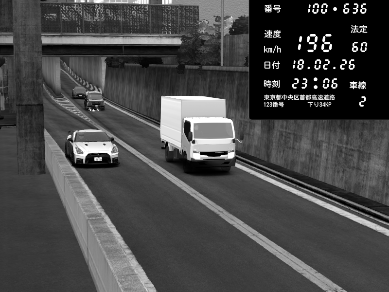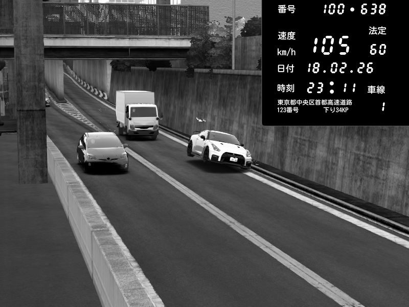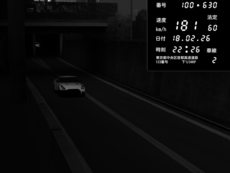 | 2026/02/18 00:54 | C1内回り 京橋 | 185 / 60 km/h | Lukazi | Nissan GT-R NISMO 2017 | CAPTURE |