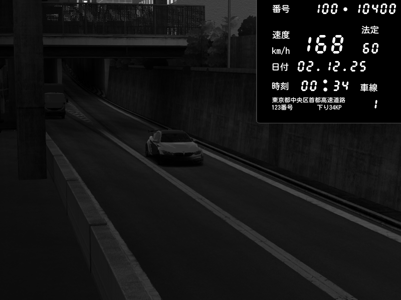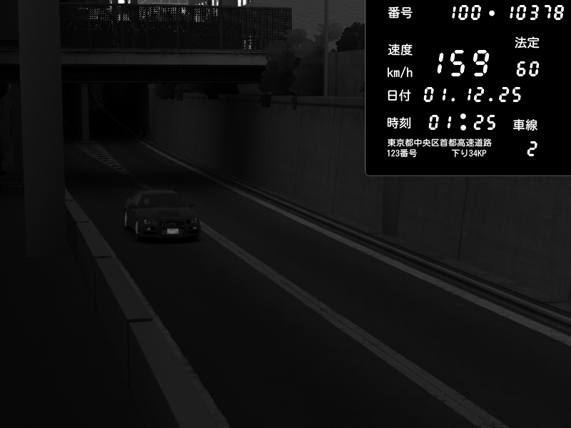 | 2025/12/01 01:25 | C1内回り 京橋 | 159 / 60 km/h | - Lonely.Driver - | Nissan Skyline GT-R R34 Nismo Omori Factory S1 | CAPTURE |