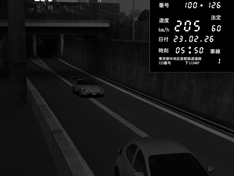 | 2026/02/23 21:59 | C1内回り 京橋 | 100 / 60 km/h | LittleClimb | Honda S2000 (AP2 - Legendary) | CAPTURE |