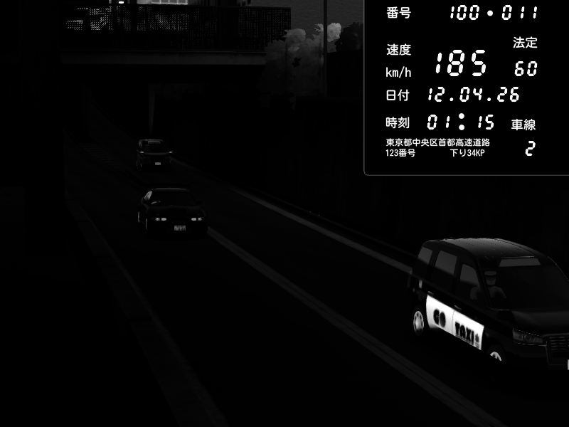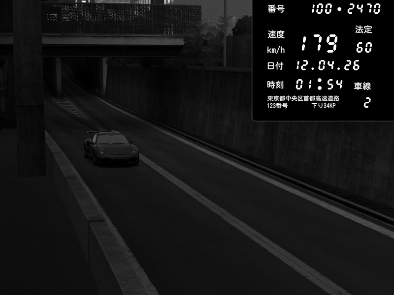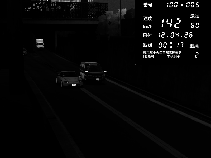 | 2026/04/12 01:10 | C1内回り 京橋 | 184 / 60 km/h | 木曜が一番疲れている | Nissan Skyline GTR R33 (S3 - Wangan) | CAPTURE |