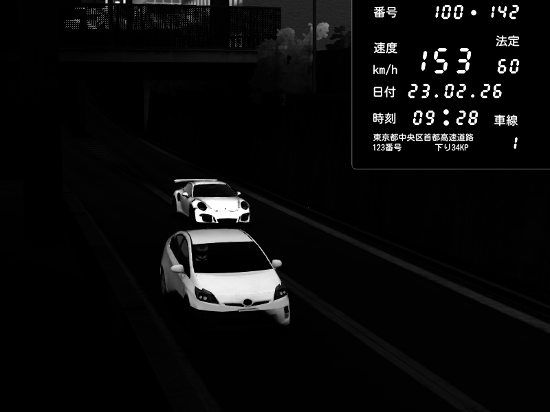 | 2026/02/24 01:50 | C1内回り 京橋 | 199 / 60 km/h | Shutoko Queen | Porsche 911 GT3 RS | CAPTURE |