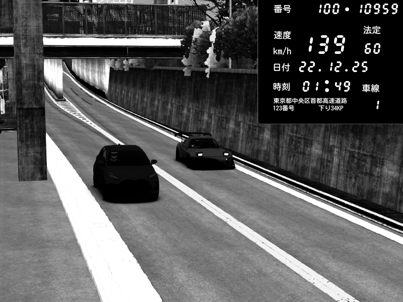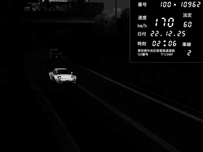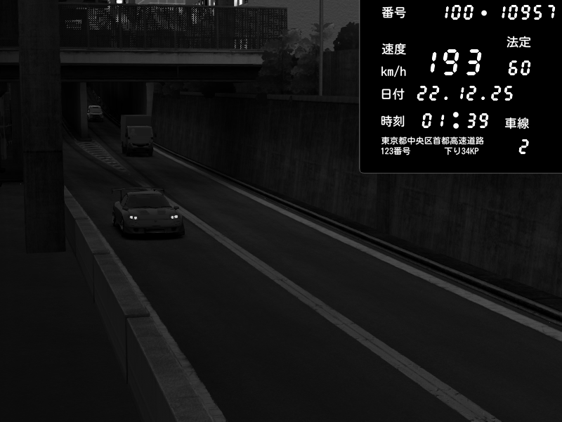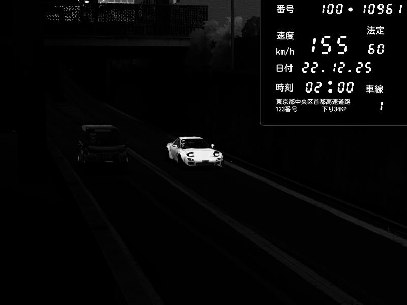 | 2025/12/22 01:39 | C1内回り 京橋 | 193 / 60 km/h | Shachiku508 | Mazda RX-7 FD3S RE Amemiya | CAPTURE |