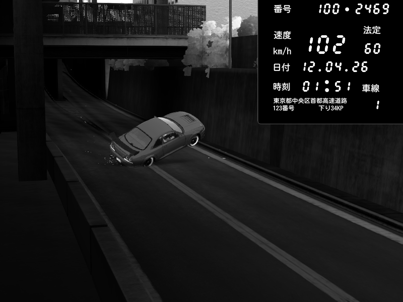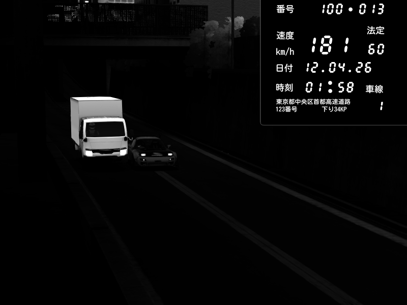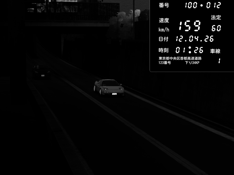 | 2026/04/12 01:04 | C1内回り 京橋 | 162 / 60 km/h | Player | Mazda RX-7 FD3S RE Amemiya | CAPTURE |