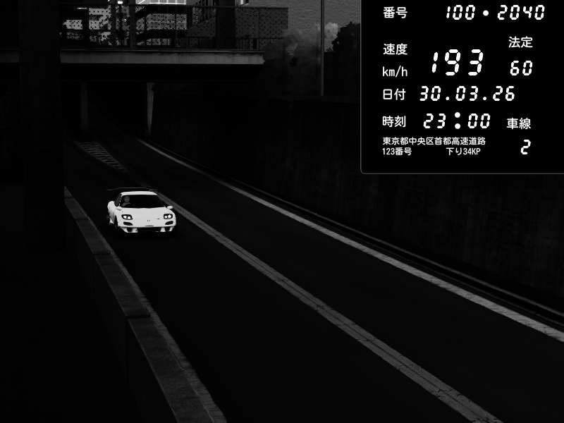 | 2026/03/30 19:57 | C1内回り 京橋 | 124 / 60 km/h | ETOworks | Mazda RX-7 FD3S RE Amemiya | CAPTURE |