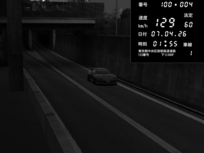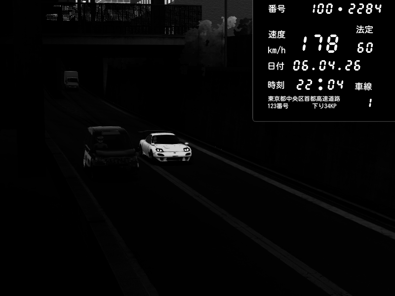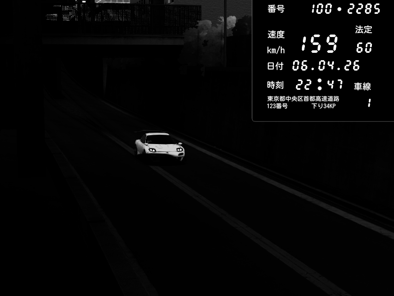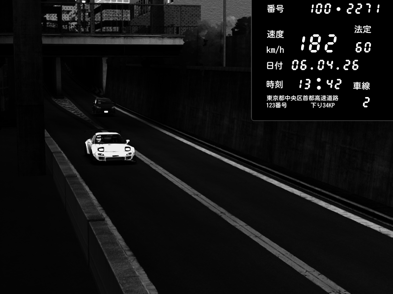 | 2026/04/06 22:47 | C1内回り 京橋 | 159 / 60 km/h | SoftHard | Mazda RX-7 FD3S RE Amemiya | CAPTURE |