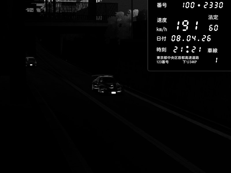 | 2026/04/06 20:57 | C1内回り 京橋 | 168 / 60 km/h | SCAR-L_T-K | Pit Road M - Mitsubishi GTO Twin Turbo | CAPTURE |
