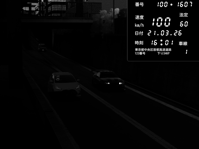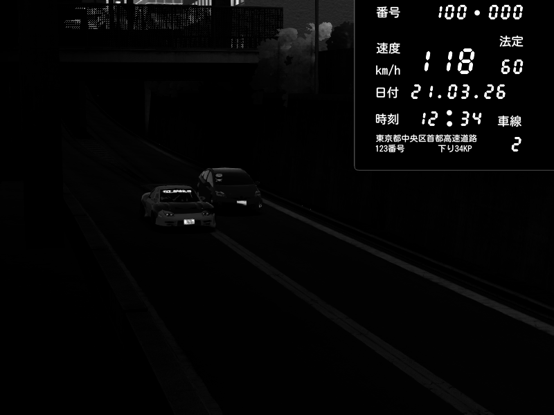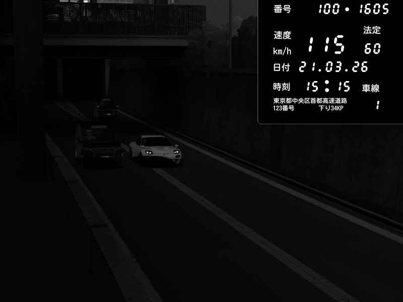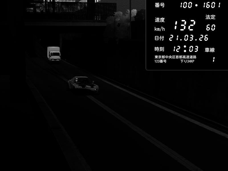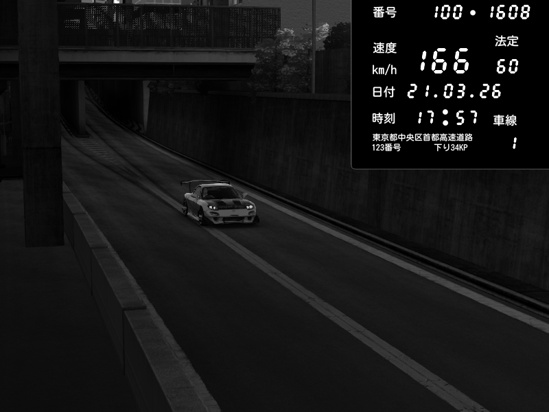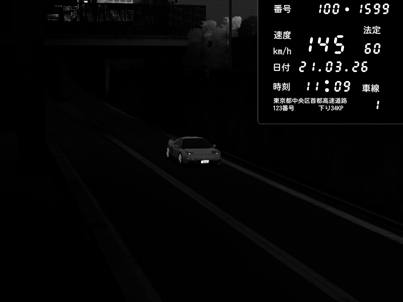 | 2026/03/21 21:18 | C1内回り 京橋 | 100 / 60 km/h | Nizurun | Mazda RX-7 FD3S RE Amemiya | CAPTURE |