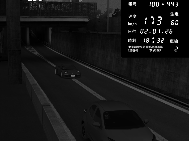 | 2026/01/02 18:32 | C1内回り 京橋 | 173 / 60 km/h | StarRingChild | Honda NSX [NA1] PVLSX | CAPTURE |