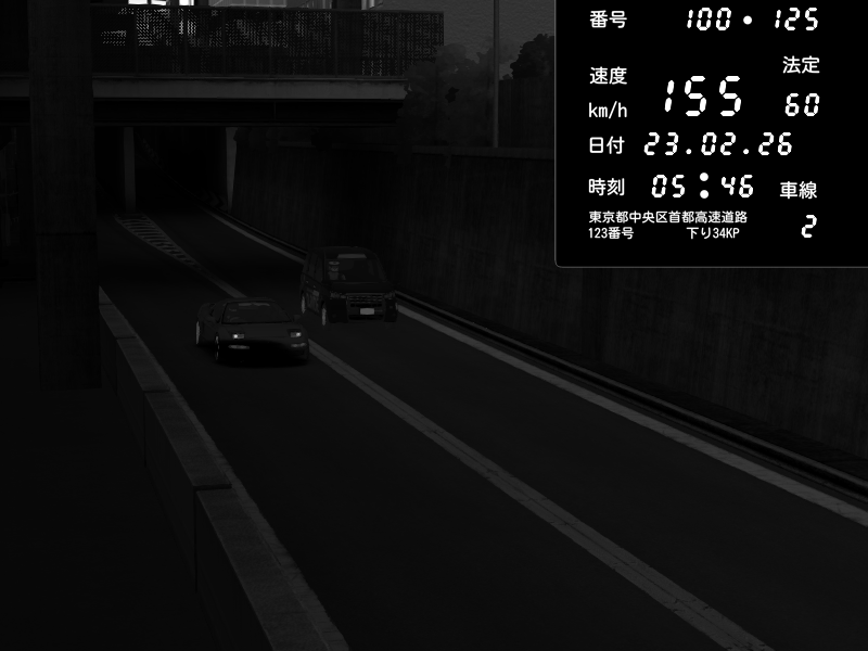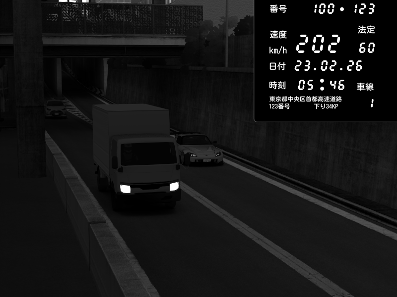 | 2026/02/23 22:18 | C1内回り 京橋 | 172 / 60 km/h | SunlarzAr | Honda S2000 (AP2 - Legendary) | CAPTURE |